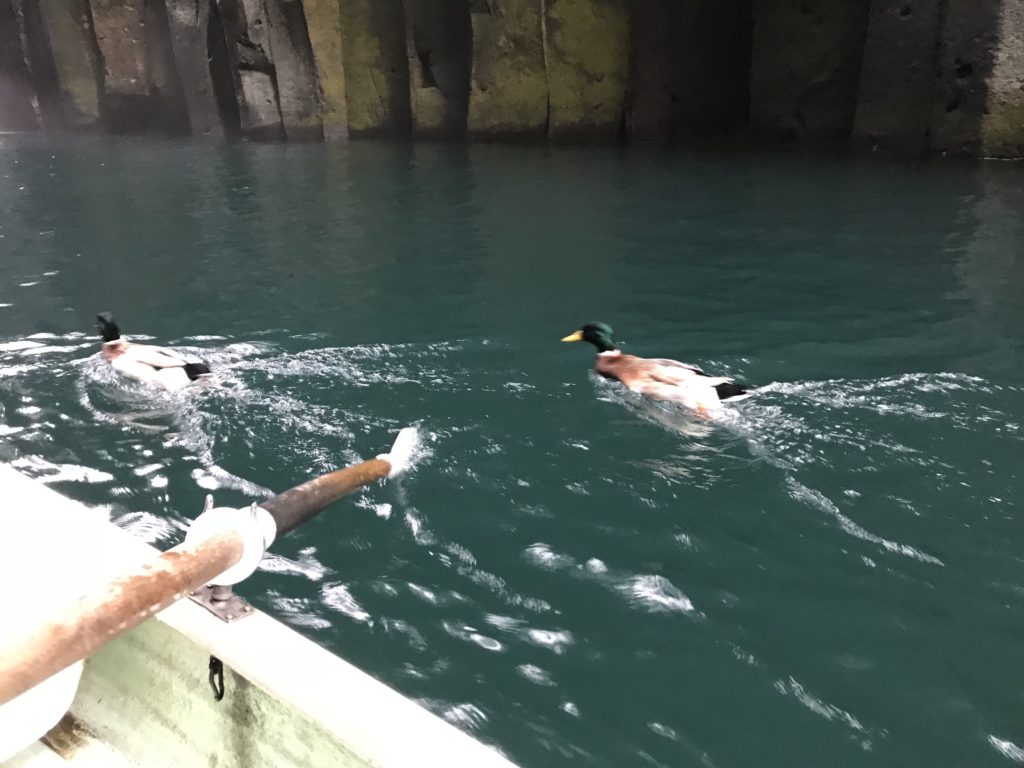 小雨が降っていたので傘を持ち込んで乗船しました。