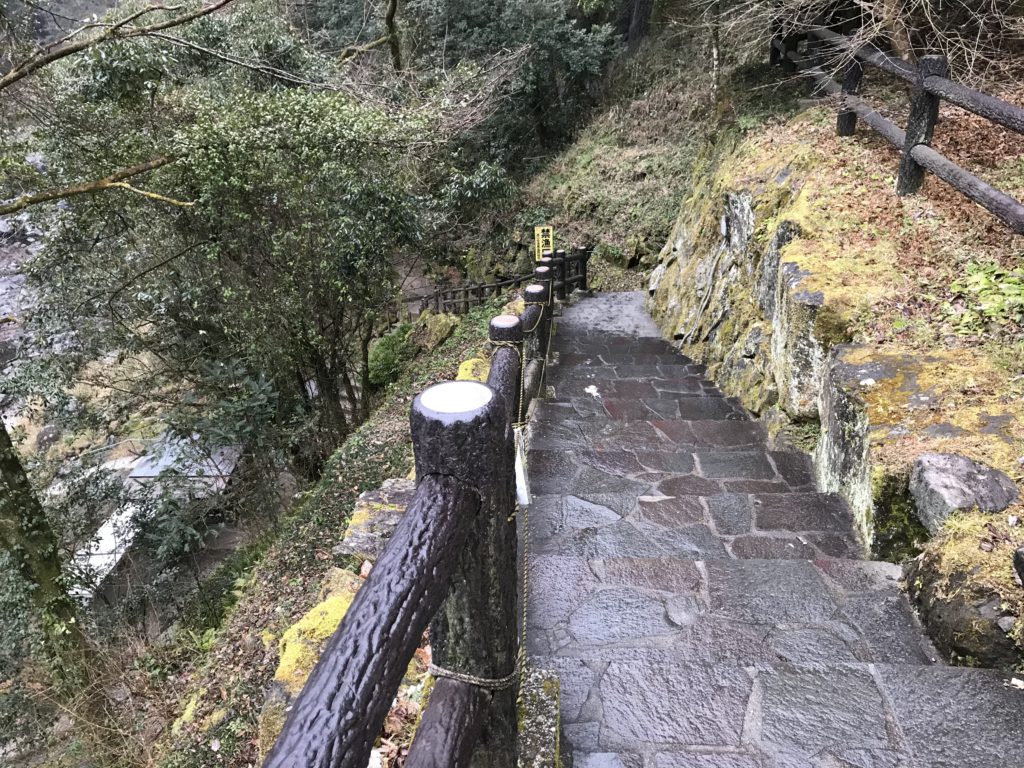 左側の通路を歩いていくと階段があるので降りていきます。